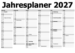 Jahresplaner 2027 neu! Komplette Jahresübersicht für das Jahr 2027. Alle Termine sind über Microsoft Word veränderbar. ZIP-Datei, 42 KB. |